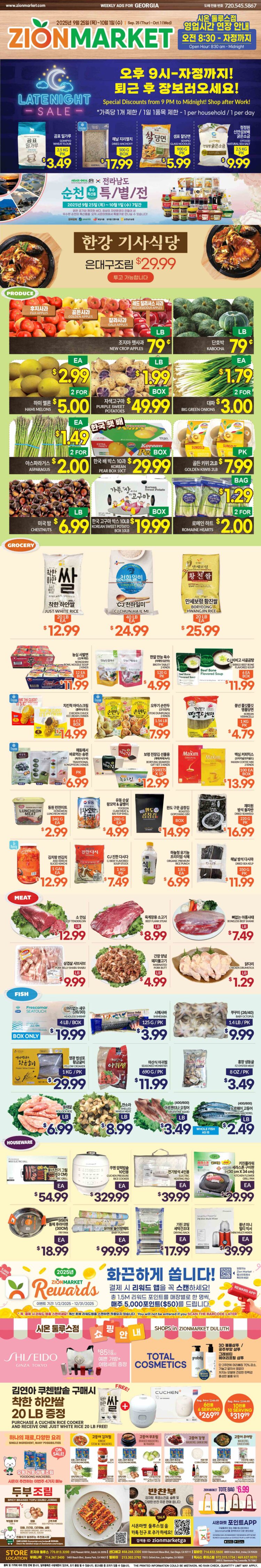 애틀랜타 지역 한인들의 대표 마트인 시온마켓이 25일(목)부터 10월 1일(수)까지 ‘순천 특산물 특별전’을 비롯한 다양한 인기 상품을 특별가에 선보인다.