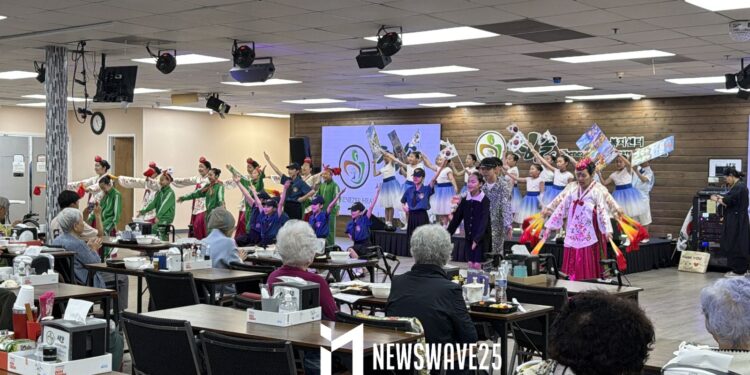 어린이합창단이 28일 오전 애틀랜타 도착 직후 첫 일정으로 청솔시니어센터를 찾아 특별 공연을 펼치며 지역 한인 시니어들에게 깊은 감동을 선사했다.