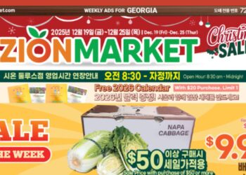 둘루스에 위치한 시온마켓이 오는 11월 28일(금)부터 12월 4일(목)까지 특별 할인 행사를 진행한다.