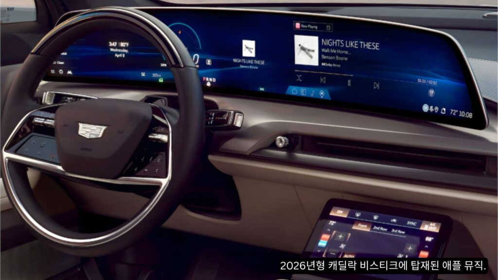 일부 캐딜락 고급 모델은 애플뮤직의 ‘공간음향’ 기능도 지원한다. 이 서비스는 극장에서처럼 입체감 있는 음향을 제공한다.
