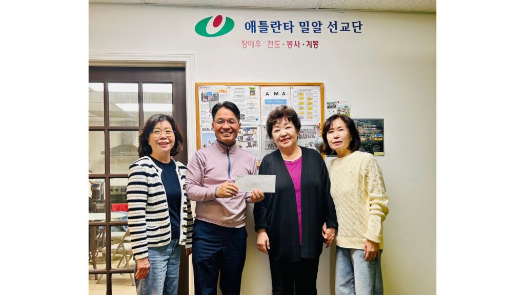 애틀랜타 정신여중고 동문회(회장 장미희)는 지난 21일 애틀랜타 밀알선교단(단장 최재휴 목사)을 방문해 후원금을 전달하며 지역사회 나눔 활동을 이어갔다.
