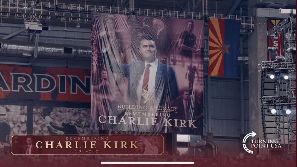 지난 11일 유타밸리 대학교에서 암살당한 보수 활동가이자 터닝포인트 USA 창립자 찰리 커크의 장례식이 21일 글렌데일 스테이트 팜 스타디움에서 열렸다.