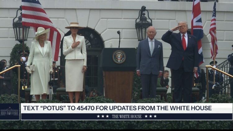 찰스 국왕과 카밀라 왕비는 이날 오전 백악관에서 도널드 트럼프 대통령과 멜라니아 트럼프 여사의 공식 환영을 받았다.