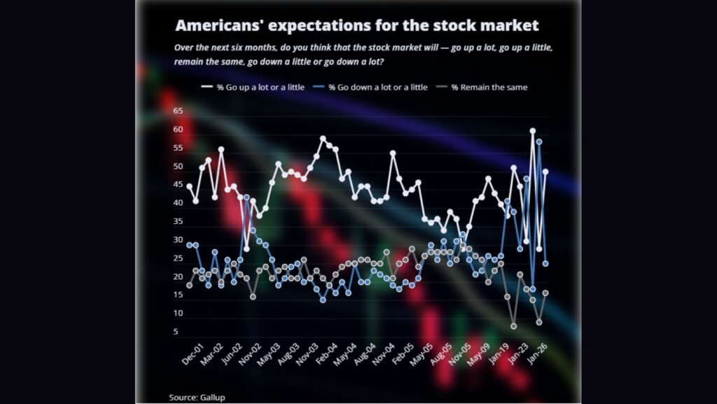 여론조사 기관 갤럽(Gallup)이 1월 2일부터 17일까지 실시한 최신 조사에 따르면, 응답자의 절반이 향후 주식시장이 상승할 것으로 내다봤다. 주가 하락을 예상한 비율은 25%에 그쳤다. 경제성장에 대해서도 49%가 개선을 전망해, 감소를 예상한 36%를 크게 웃돌았다.