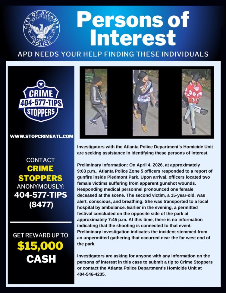 애틀랜타 피드몬트 공원에서 발생한 총격 사건으로 10대 1명이 숨지고 1명이 부상했다. 경찰은 사건과 관련된 용의선상 인물들의 사진을 공개하고 공개 수사에 나섰다.