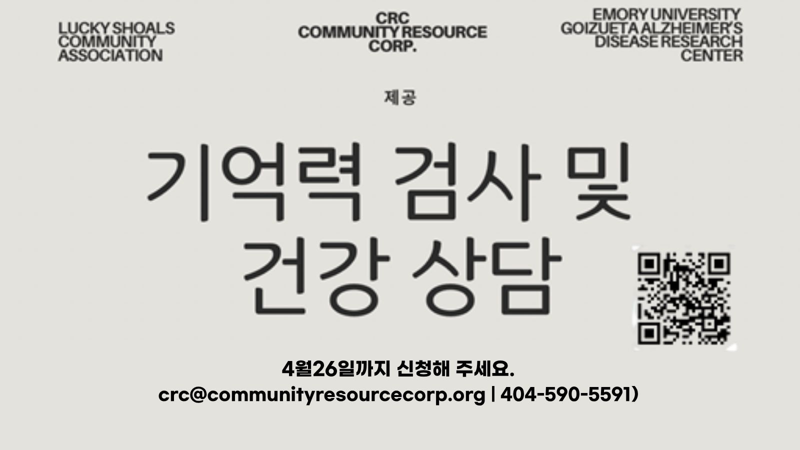 신청 및 문의는 이메일(crc@communityresourcecorp.org) 또는 전화(404-590-5591)로 하면 된다.