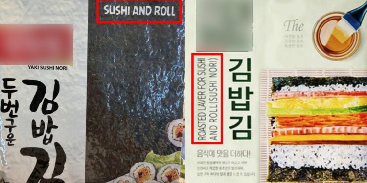 최근 한국 김밥이 세계적인 인기를 얻고 있음에도 불구하고, 일부 ‘김밥용 김’ 포장지에 여전히 영어로 ‘스시 앤 롤'(SUSHI AND ROLL)이라는 표기가 사용되고 있어 개선이 필요하다는 지적이 나오고 있다.