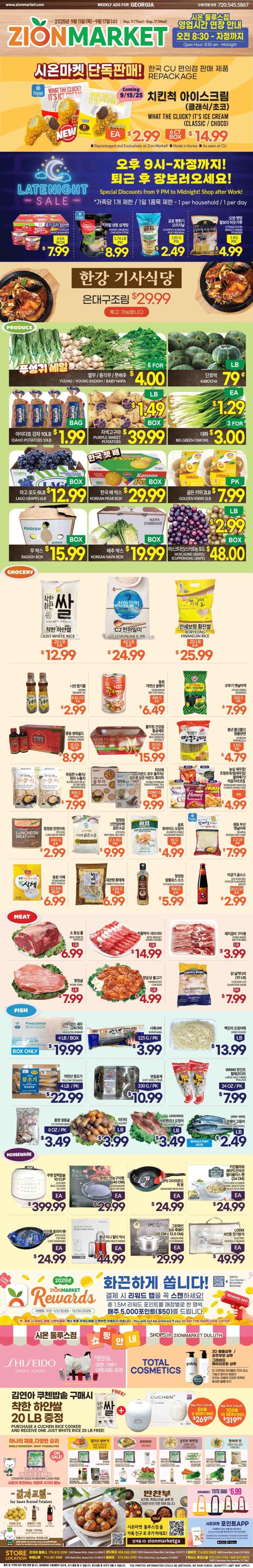 한편 시온마켓 둘루스점은 고객 편의를 위해 영업시간을 오전 8시 30분부터 자정까지 연장 운영하며, ‘Late Night Sale’을 통해 매일 오후 9시부터 자정까지 특별 할인 행사를 진행한다. 행사 품목은 1가족당 1일 1품목으로 제한된다.