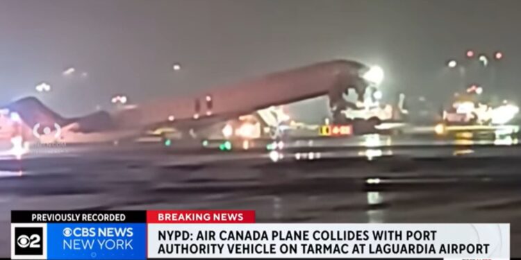 미국 연방항공청(FAA) 발표에 따르면 캐나다 몬트리올에서 출발한 캐나다 익스프레스 항공 소속 봄바디어 CRJ-900 여객기(항공편 ACA8646)가 미 동부시간으로 22일 오후 11시 45분께 라과디아 공항 활주로에 착륙한 뒤 항공기 구조용 소방트럭과 충돌했다.