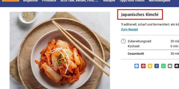 독일의 대형 마트 체인 알디(ALDI)가 최근 자체 브랜드 제품에 ‘중국 김치’라고 표기해 비판을 받은 데 이어 자사 홈페이지 레시피 코너에서 김치를 ‘Japanisches Kimchi'(일본 김치)로 표기한 사실이 확인돼 논란이 재점화하고 있다.