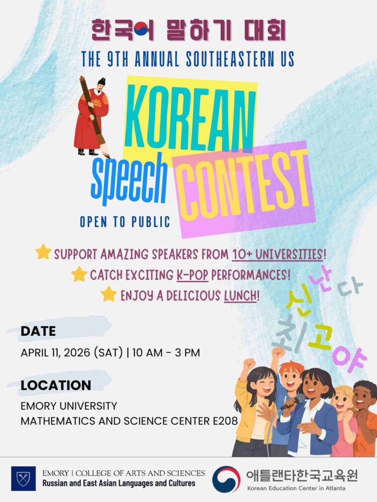 애틀랜타한국교육원과 에모리대학교가 공동 주최하는 ‘제9회 미동남부 지역 대학생 한국어 말하기 대회’가 오는 11일(토) 에모리대학교 수학·과학센터(E208호)에서 열린다.