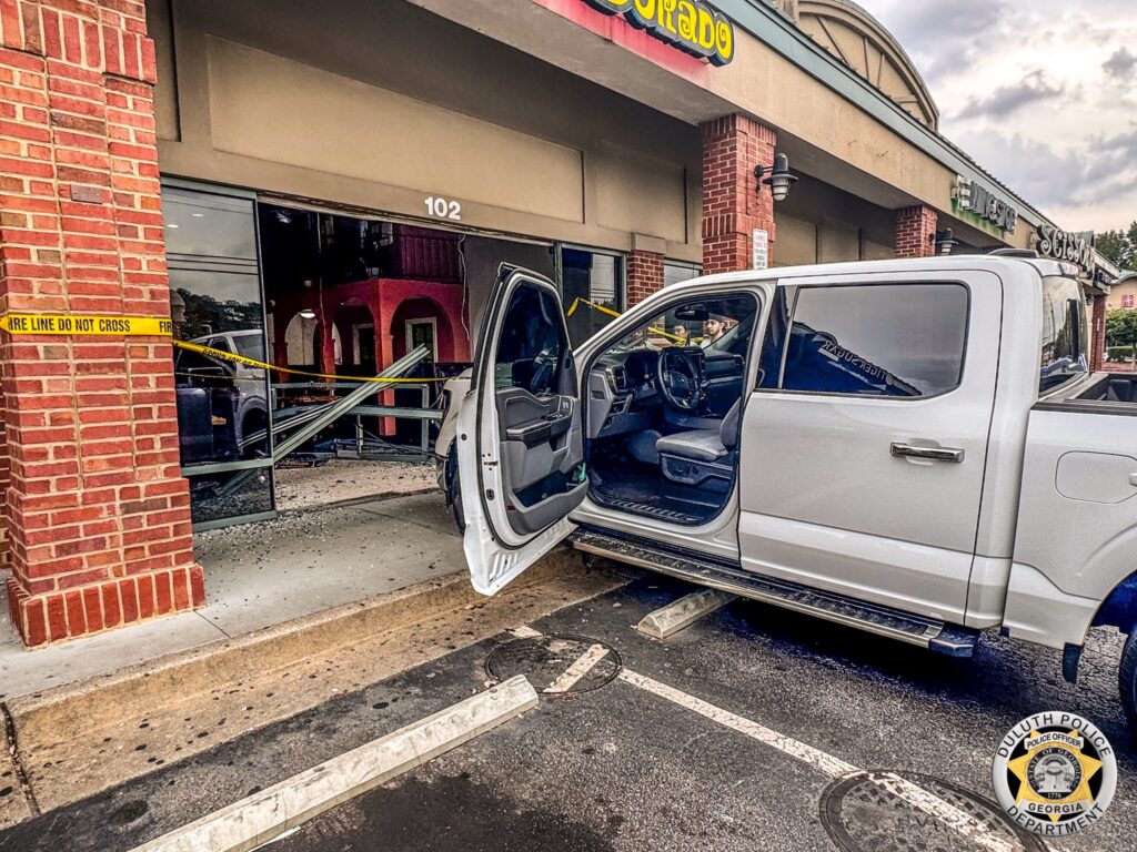 둘루스 플레전트 힐 로드 2500번지 한 식당에 26일(금), 픽업트럭이 매장으로 돌진하는 사고가 발생했다.