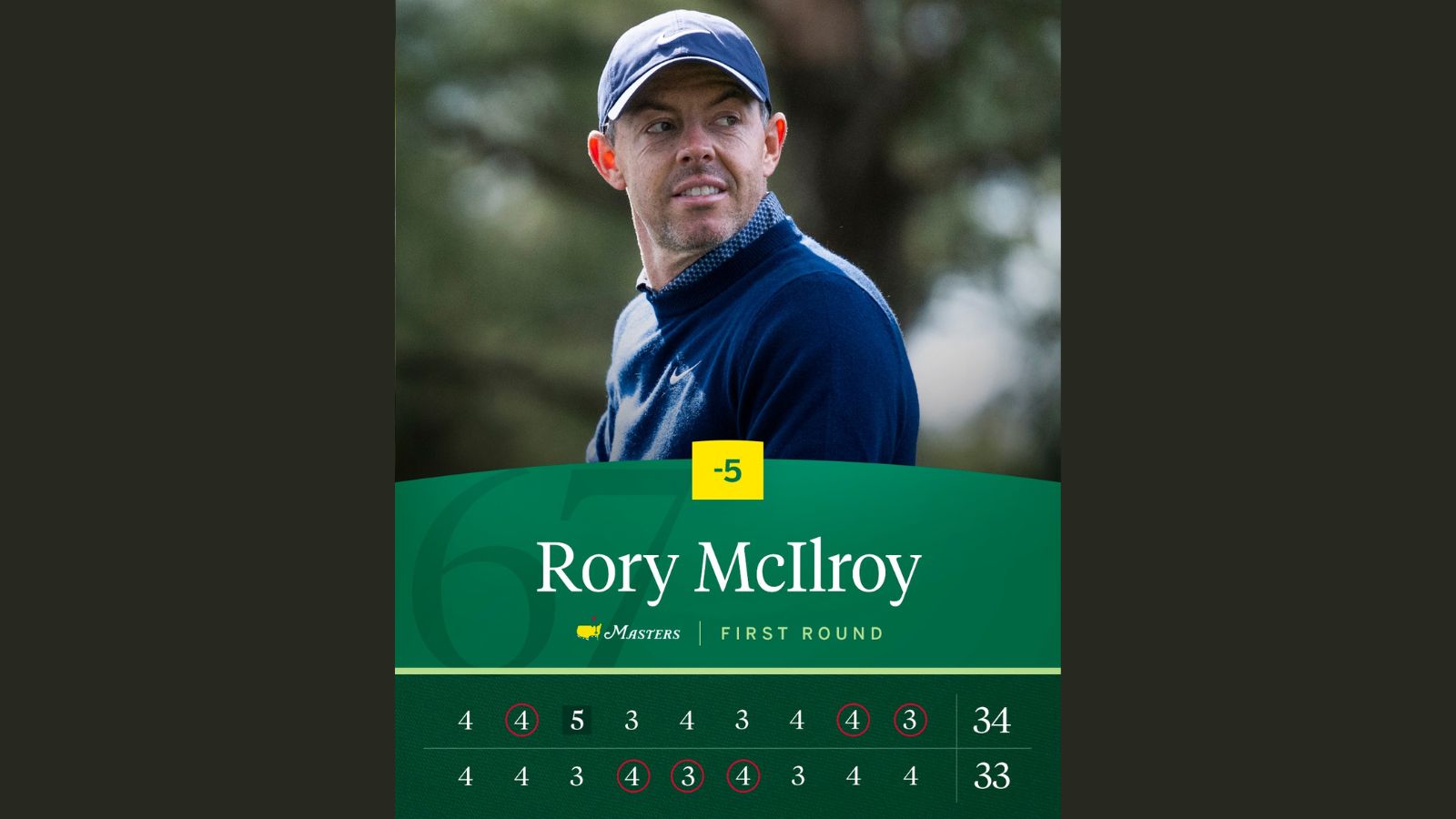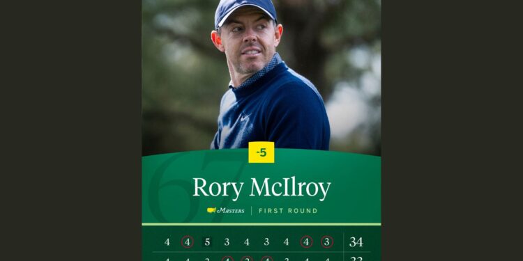 매킬로이는 10일(한국시간) 미국 조지아주 오거스타의 오거스타 내셔널 골프클럽(파72·7천565야드)에서 열린 대회 첫날 1라운드에서 버디 6개와 보기 1개로 5언더파 67타를 쳤다.