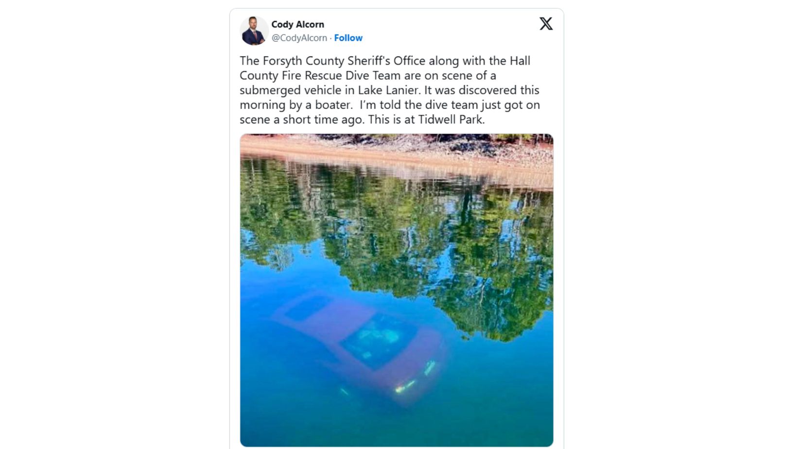당국에 따르면 해당 차량은 이날 오전 한 보트 이용객에 의해 처음 발견됐다. 이후 포사이스 카운티 셰리프국과 홀 카운티 셰리프국 다이브팀(Hall County Sheriff’s Office Dive Team)이 공동으로 현장에 출동해 수중 수색 및 인양 작업을 진행했다.