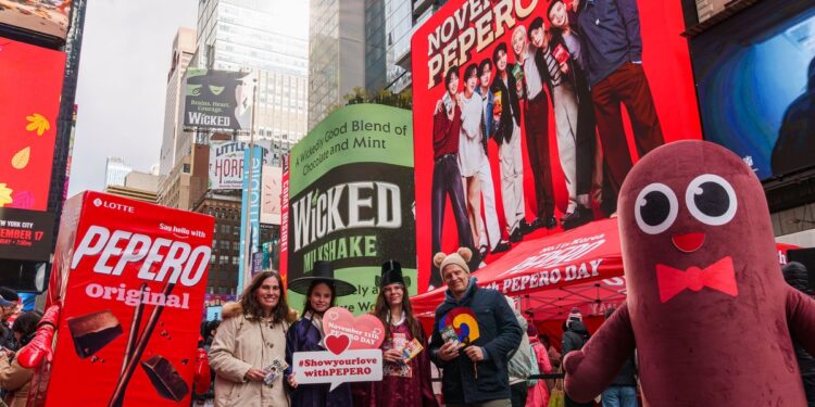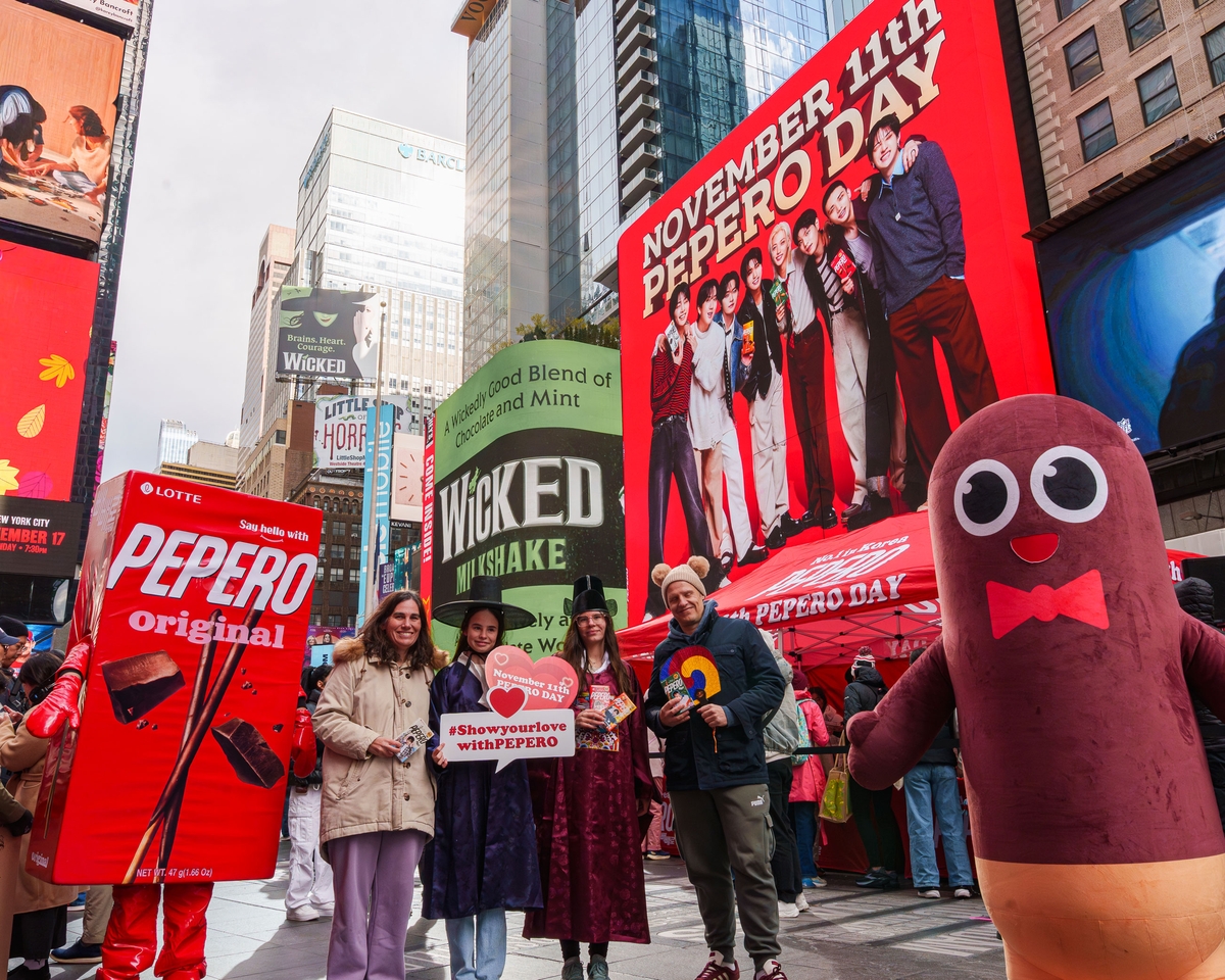 롯데웰푸드는 11일 빼빼로데이를 기념해 미국 뉴욕 타임스스퀘어 파더 더피 스퀘어에서 ‘웰컴 투 K스위트 홀리데이’ 행사를 성황리에 열었다고 12일 밝혔다.