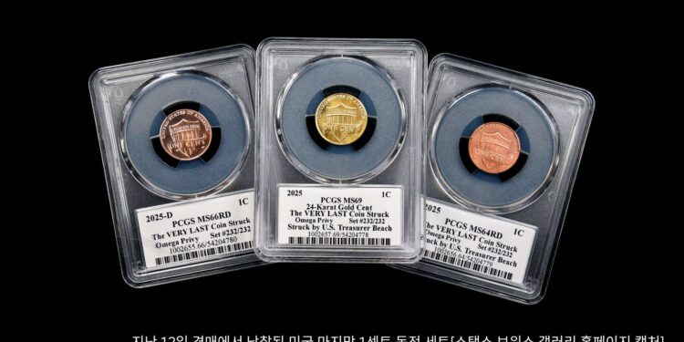 도널드 트럼프 미국 대통령의 지시로 생산이 중단된 1센트(페니) 동전의 마지막 주조분이 최근 경매에서 약 247억원에 판매됐다.