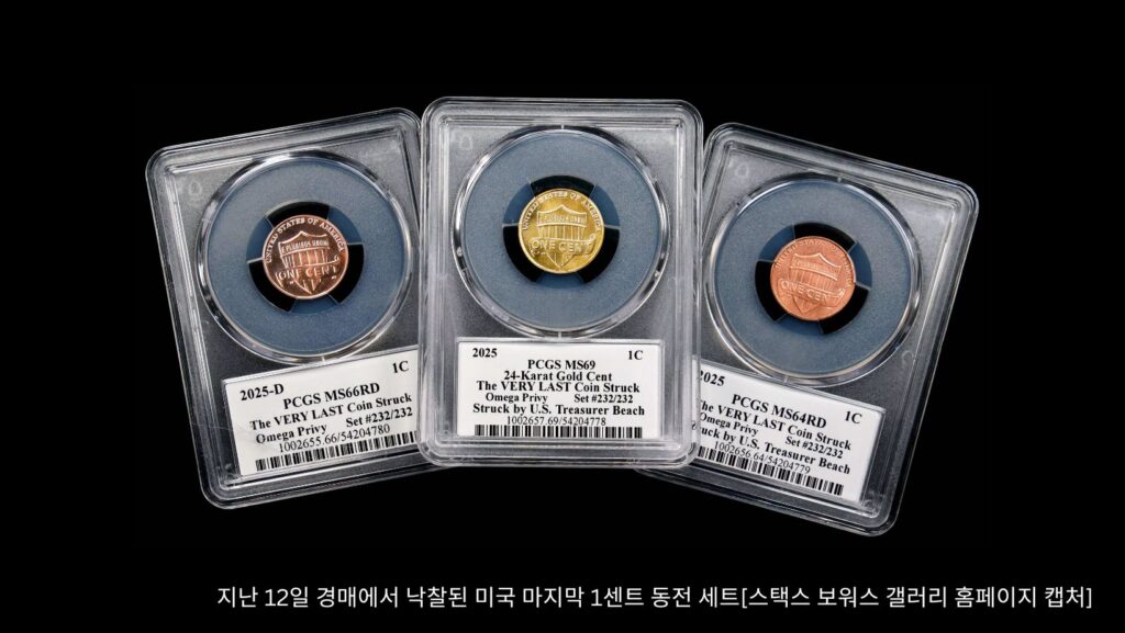 16일 ABC방송 등에 따르면 캘리포니아주에 있는 경매사 스택스 보워스 갤러리는 지난 12일 마지막으로 주조된 유통용 1센트 동전 232세트가 총 1천676만 달러(약 247억원)에 낙찰됐다고 밝혔다.