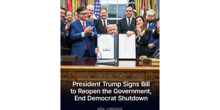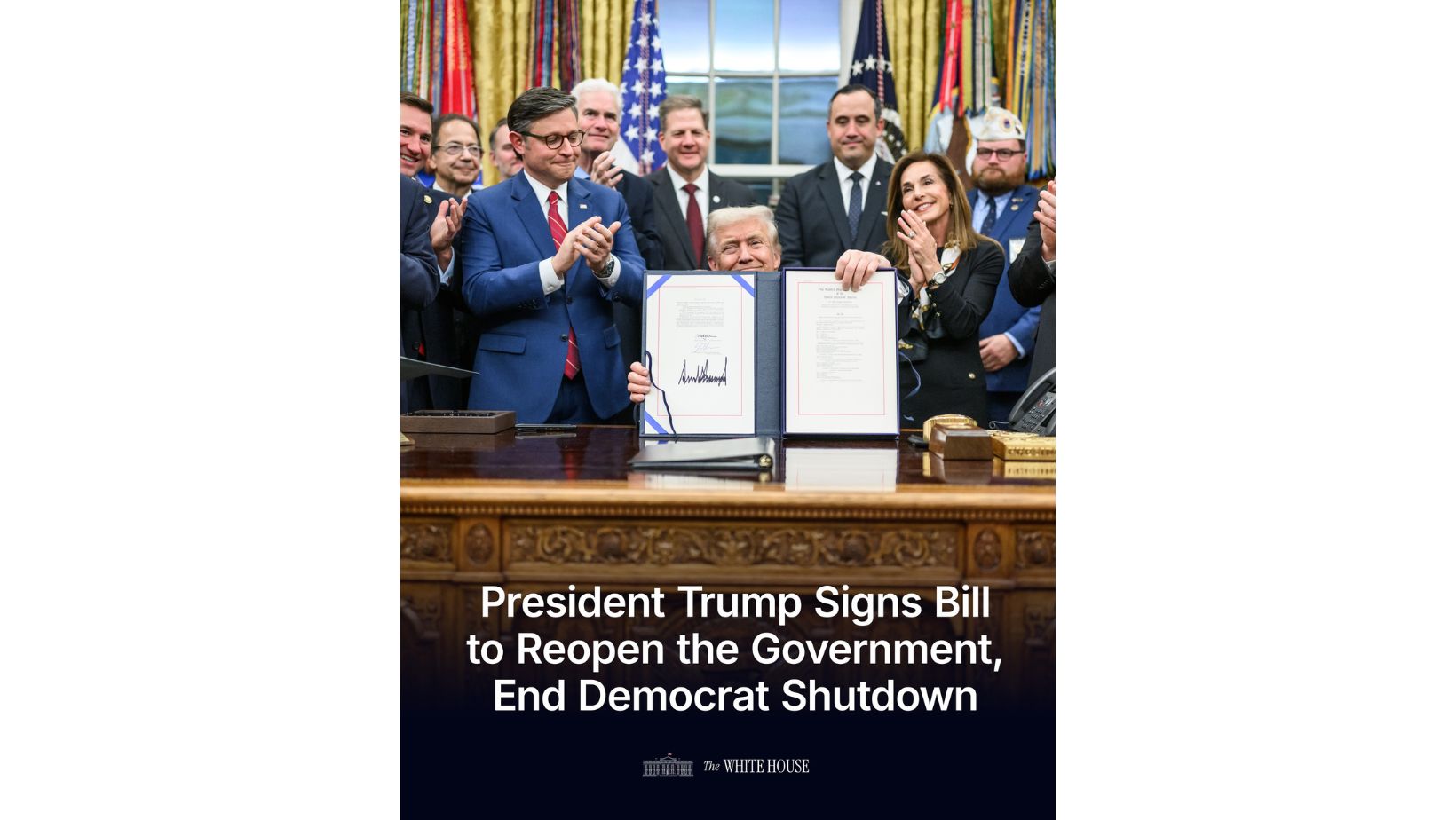 트럼프 대통령은 “그들(민주당)은 2만편 이상의 항공편 취소 또는 지연을 야기했고, 100만명 이상의 공무원들이 급여를 받지 못하게 만들었으며, 지원이 필요한 수많은 미국인들이 혜택을 받지 못하게 했다”고 비판했다.