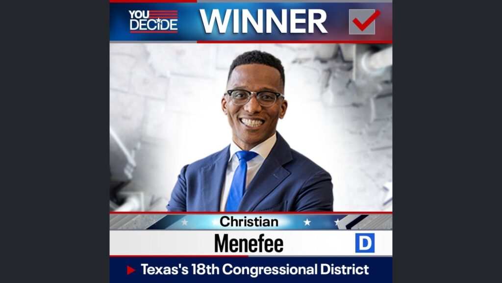1일(현지시간) AP통신에 따르면 전날 치른 텍사스주 18선거구 보궐선거에서 민주당 후보 크리스천 메네피가 당선됐다.