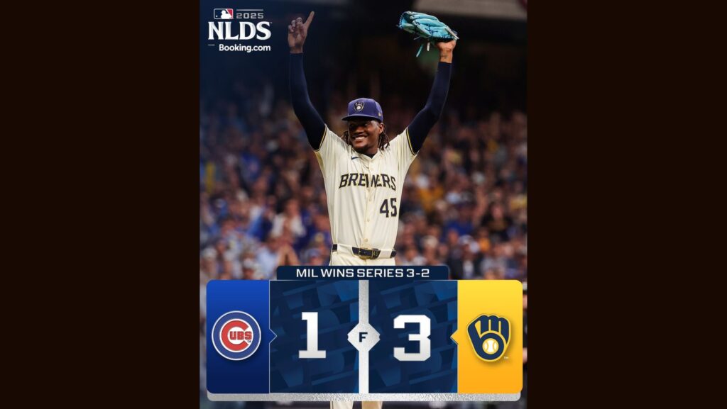밀워키는 12일(한국시간) 미국 위스콘신주 밀워키 아메리칸패밀리필드에서 열린 2025 MLB 포스트시즌 시카고 컵스와 내셔널리그 디비전시리즈(NLDS·5전 3승제) 5차전에서 3-1로 승리했다.