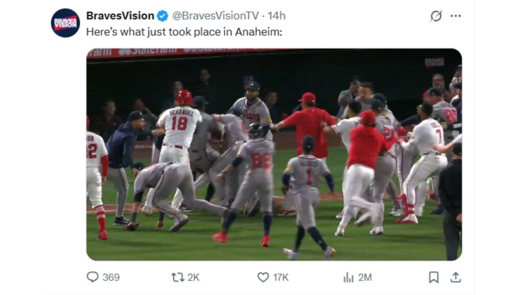 애틀랜타 브레이브스가 경기 중 발생한 벤치클리어링 소동 속에서도 LA 에인절스를 7-2로 꺾고 승리를 거뒀다.