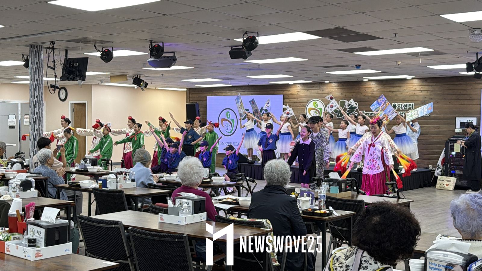 어린이합창단이 28일 오전 애틀랜타 도착 직후 첫 일정으로 청솔시니어센터를 찾아 특별 공연을 펼치며 지역 한인 시니어들에게 깊은 감동을 선사했다.