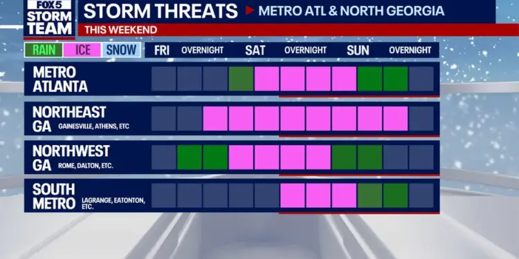북조지아와 메트로 애틀랜타 전역에 이번 주말 대규모 얼음비(Freezing Rain) 가 예보되면서 미 국립기상청(NWS)이 광범위한 지역에 겨울폭풍 주의보(Winter Storm Watch) 를 발령했다.