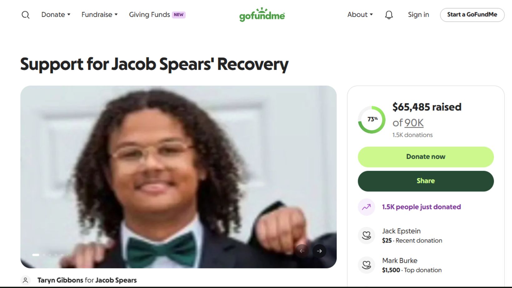 제이콥의 고등학교 시절 친구들은 가족의 치료비와 이동·체류 비용 부담을 덜기 위해 고펀드미(GoFundMe) 모금 활동을 시작했다. 모금 페이지를 개설한 테린 기번스는 “가족이 도움을 요청하지 않았지만, 친구들이 자발적으로 나서 회복 여정을 돕고 있다”며 “작은 정성과 연대가 큰 힘이 될 것”이라고 전했다.