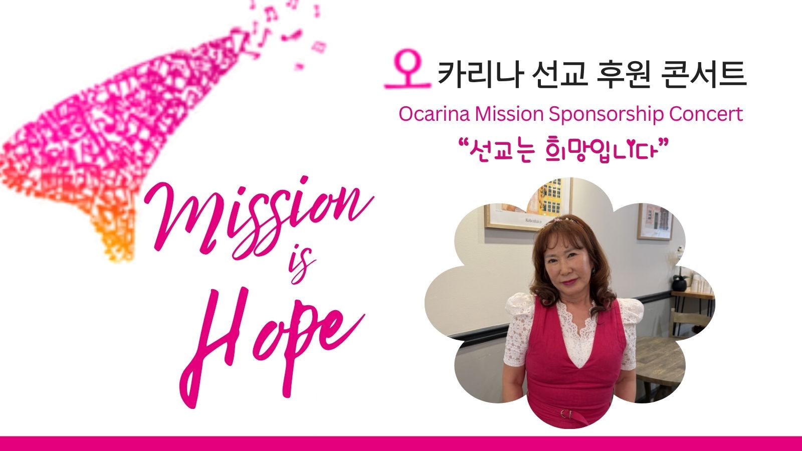 오카리나 USA(대표 신혜경)가 주최하는 선교 후원 콘서트가 ‘선교는 희망’을 주제로 오는 5월 9일(토) 오후 4시, 스와니 라루체 극장에서 열린다.