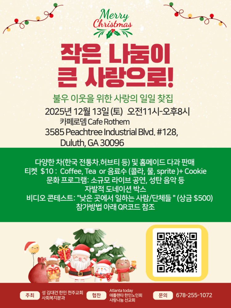 이번 행사는 “작은 나눔이 큰 사랑으로”라는 메시지 아래 다양한 차와 전통 음료, 홈메이드 다과가 준비되며, 티켓은 10달러다. 티켓 구매 시 커피·티·소다(콜라·스프라이트·물 중 택1)와 쿠키가 제공된다.