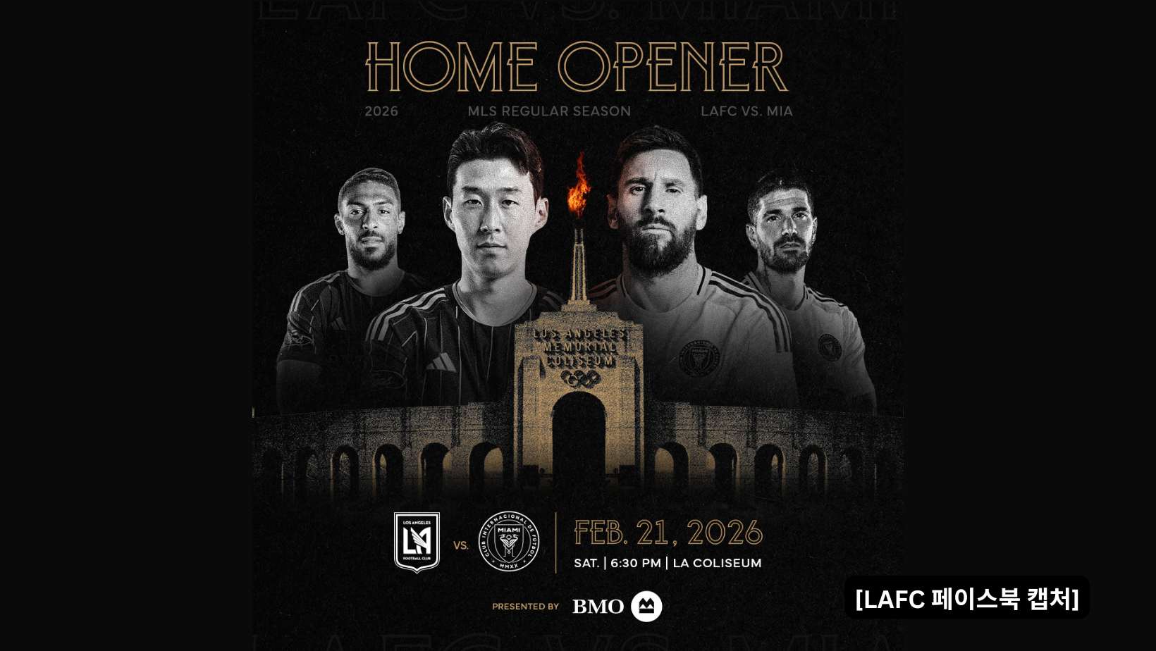 LAFC는 이날 내년 일정이 발표되자 소셜 미디어로 첫 경기 홍보 이미지를 올리며 콜리세움을 중심으로 손흥민과 메시를 전면에 배치해 상징성을 부각했다.