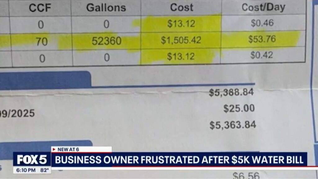 조지아주 애틀랜타의 한 소상공인이 수천 달러에 달하는 수도요금 청구에 반발하며 납부를 거부하고 법적 대응을 검토하고 있다고 폭스5 애틀랜타가 보도했다.