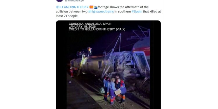 AFP 통신, 로이터 통신 등에 따르면 18일(현지시간) 오후 7시 40분께 스페인 남부 코르도바주에서 열차 두 대가 정면으로 충돌하는 사고가 일어났다.