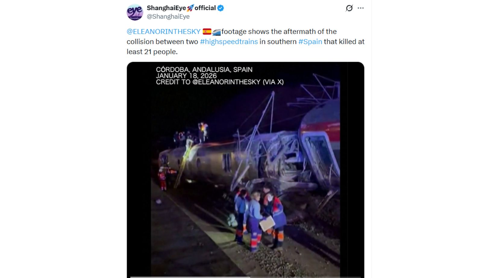 이번 사고로 마드리드와 안달루시아 간 철도 운행은 중단됐다.