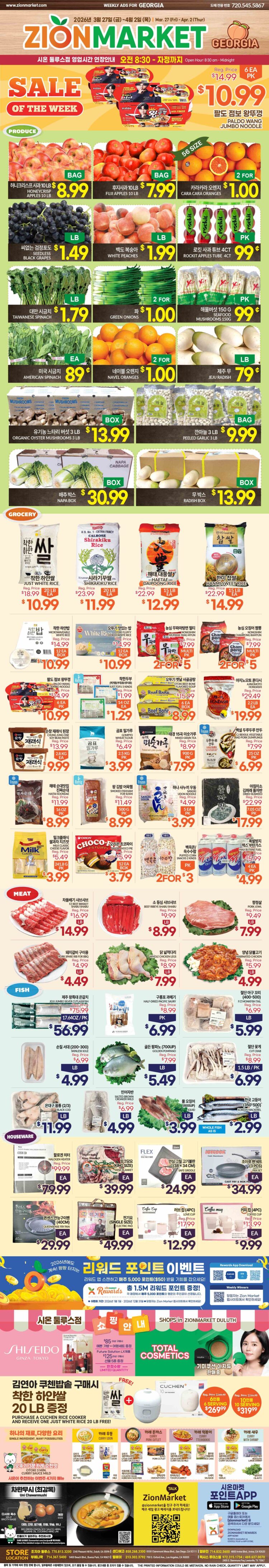 둘루스에 위치한 시온마켓이 27일(금)부터 4월 2일(목)까지 다양한 인기 상품을 할인 판매하는 ‘금주의 세일’을 진행한다.