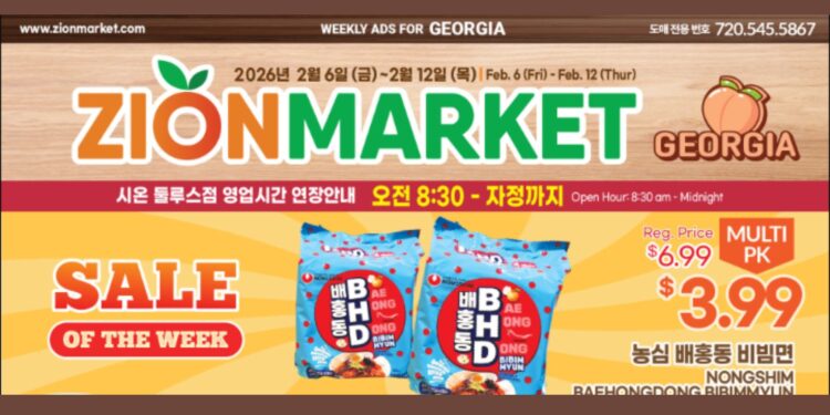 둘루스에 위치한 시온마켓이 6일(금)부터 2월 12일(목)까지 주간 세일을 진행한다.