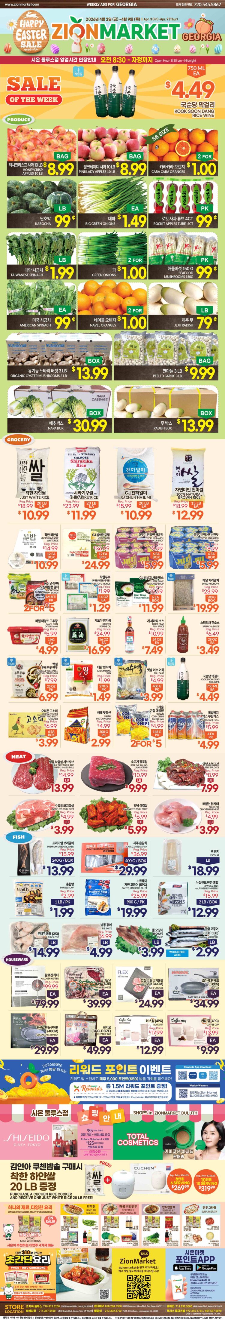 둘루스에 위치한 시온마켓이 3일(금)부터 9일(목)까지 부활절 시즌을 맞아 대규모 할인 행사와 다양한 고객 참여 이벤트를 진행한다.