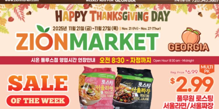 둘루스에 위치한 시온마켓이 추수감사절을 맞아 20일(목)부터 27일(수)까지 특별 할인 행사를 진행한다.