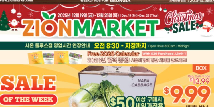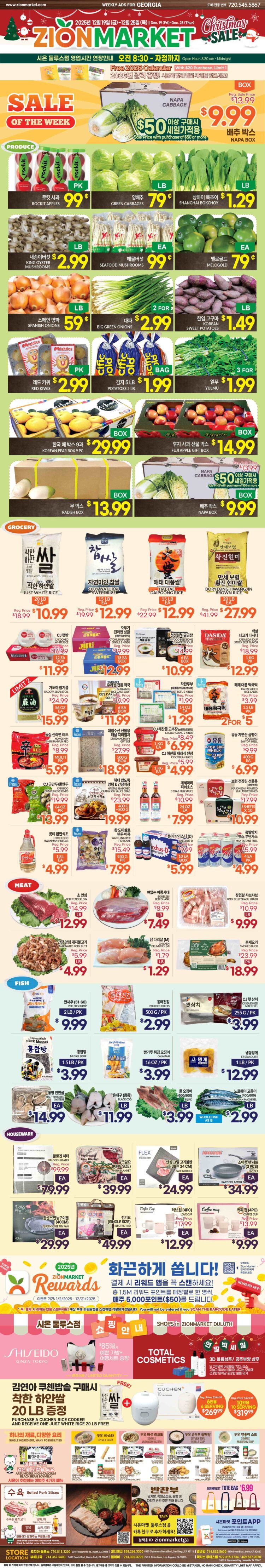 둘루스에 위치한 시온마켓이 19일(금)부터 25일(목)까지 크리스마스 특별 세일을 진행한다.