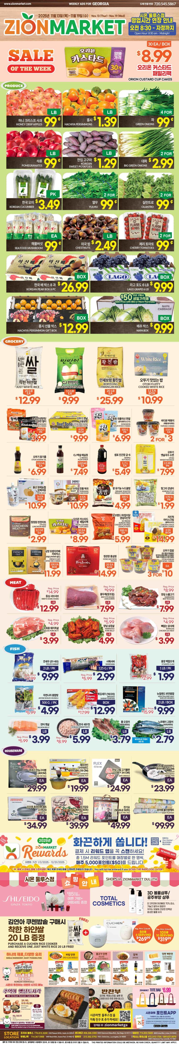 둘루스 소재 시온마켓이 11월 13일(목)부터 19일(수)까지 일주일간 특별 할인 행사를 진행한다.