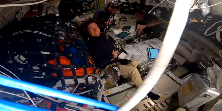 2026년 4월 6일 월요일, 아르테미스 2호 임무 시작 6일 만에 NASA 우주비행사 리드 와이즈먼, 빅터 글로버, 크리스티나 코흐와 캐나다 우주국(CSA) 우주비행사 제레미 한센은 1970년 아폴로 13호 임무가 세운 유인 우주 비행 최장 거리 기록을 경신했습니다. [사진 출처: NASA]