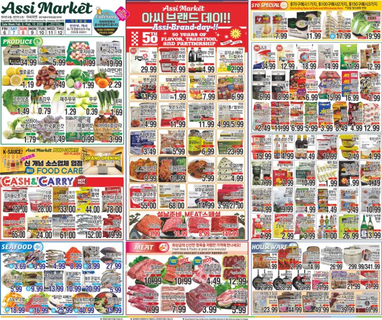 한편, 아씨마켓은 70달러 이상 구매 고객에게는 ▲농협 생배($7.99) ▲비비고 사골곰탕(6팩$11.99) ▲아씨 맛굴비($17.99) ▲배추 한 박스($19.99 상당·주말 한정) 등을 특별가에 판매한다.