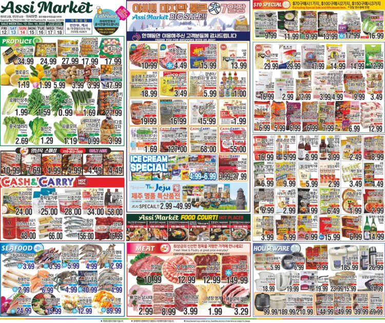 70달러 이상 구매 고객에게는 ▲CJ 사골곰탕($11.99)▲구운 알밤($9.99) ▲아씨 서천 재래김 도시락 선물박스($9.99) ▲아씨 맛굴비($17.99) ▲배추 박스($16.99 상당, 주말 한정) 등 풍성한 혜택이 제공된다.