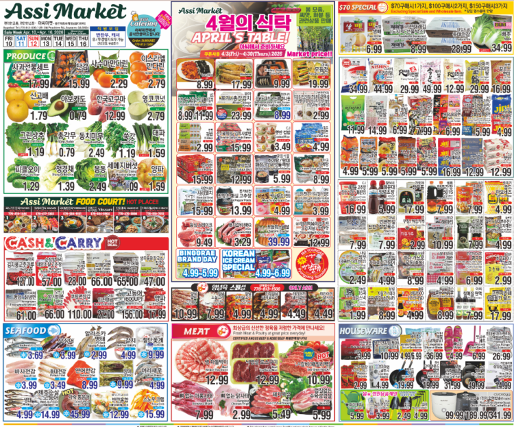 스와니에 위치한 아씨마켓 스와니점(지점장 정경섭)이 10일부터 16일까지 ‘4월의 식탁’ 특별 행사를 열고 다양한 먹거리 할인과 고객 참여 이벤트를 선보인다.