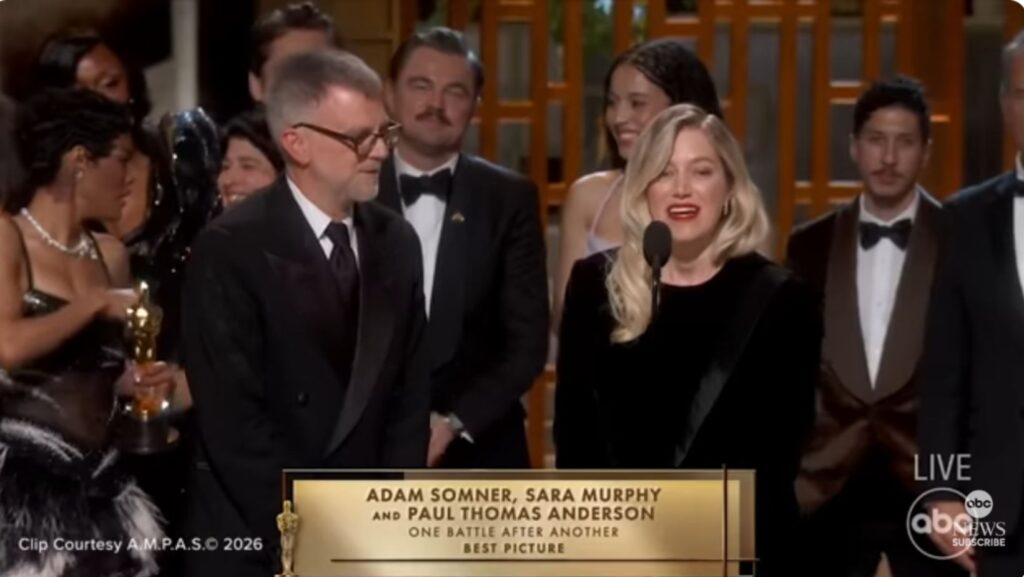 ‘원 배틀 애프터 어나더’는 작품상과 감독상, 남우조연상 외에도 각색상, 편집상, 캐스팅상까지 오스카 트로피 6개를 차지했다.