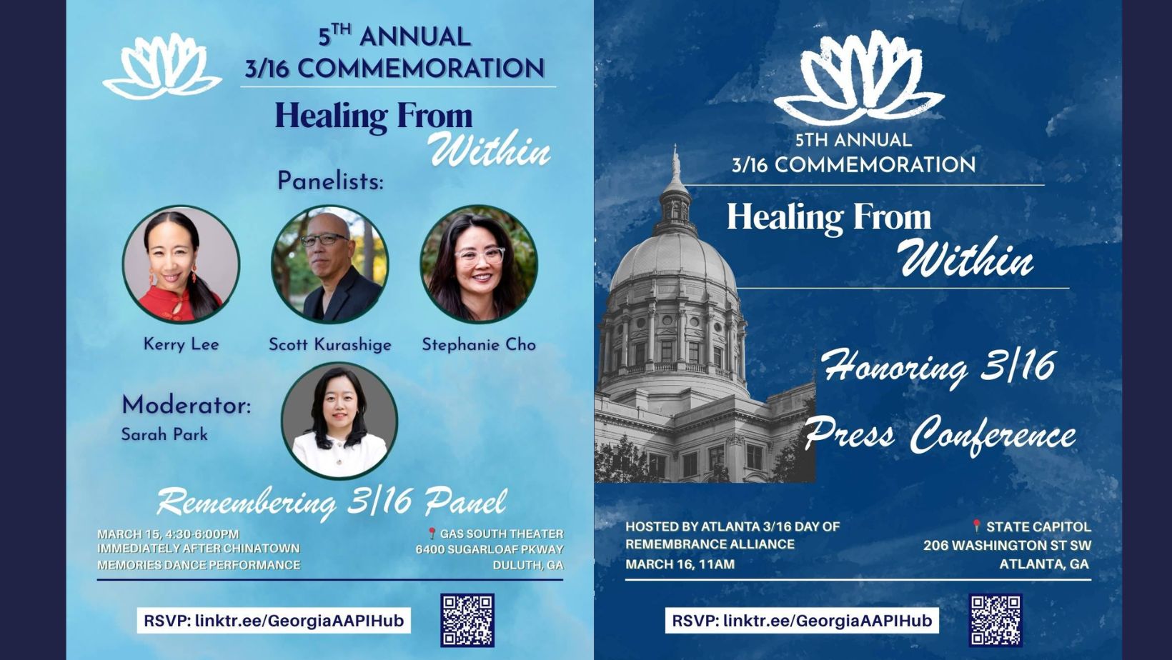 이어 16일 오전 11시부터 정오까지는 조지아주 의사당 남쪽 계단에서 기자회견이 열려 공동체 지도자들과 옹호 단체들이 지난 5년간의 치유와 옹호 활동, 공동체 조직화의 성과를 되돌아보고 반아시아 폭력 대응의 중요성을 강조할 예정이다.