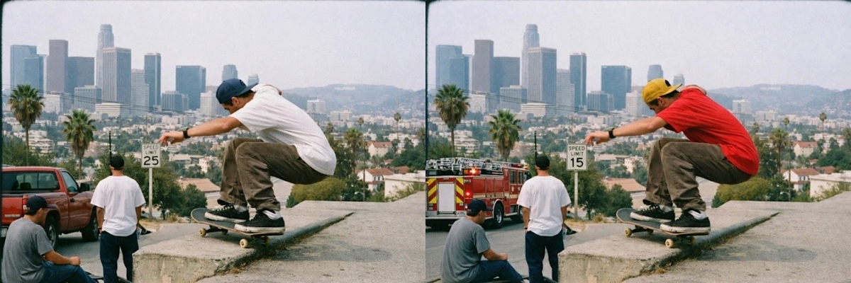 예를 들어 한 남성이 스케이트보드를 타는 모습을 사진으로 생성한 다음 전체 이미지를 그대로 유지한 채 옷과 모자 색깔만 바꾸거나, 그림 속의 특정 글씨만 바꾸는 조정이 가능하다.