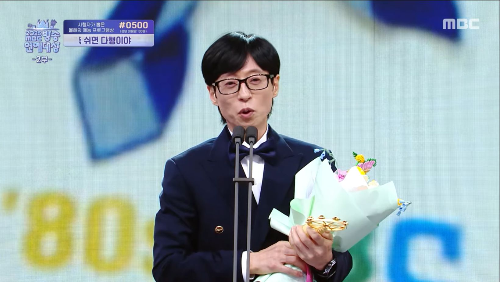 유재석은 “제가 첫 대상을 받은 게 2005년인데, 21번째를 2025년에 받았다”며 “미래는 그 누구도 모르기에, 될 수 있을지 모르겠지만 30개까지 (받을 수 있도록) 끝까지 노력해보겠다”고 수상 소감을 밝혔다.