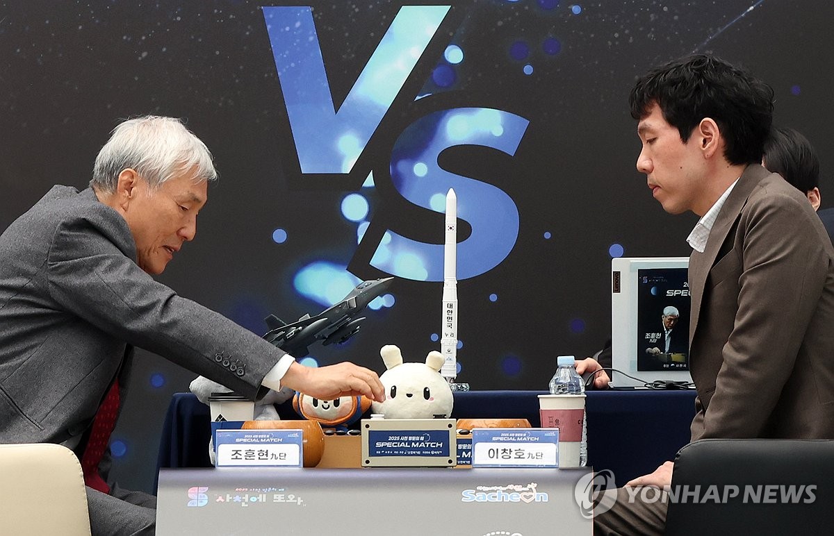 이창호는 17일 경상남도 사천시 항공우주과학관에서 열린 ‘2025 사천 방문의 해, SPECIAL MATCH’에서 ‘스승’ 조훈현 9단에게 173수 만에 흑 불계승을 거뒀다.