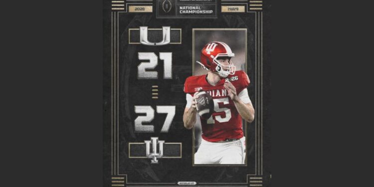 인디애나는 20일 플로리다 마이애미 가든스에서 열린 2026 College Football Playoff(CFP) 내셔널 챔피언십에서 No.10 마이애미를 27-21로 제압하고, 학교 역사상 첫 전국 챔피언에 오르며 완벽한 16전 전승 시즌을 완성했다.